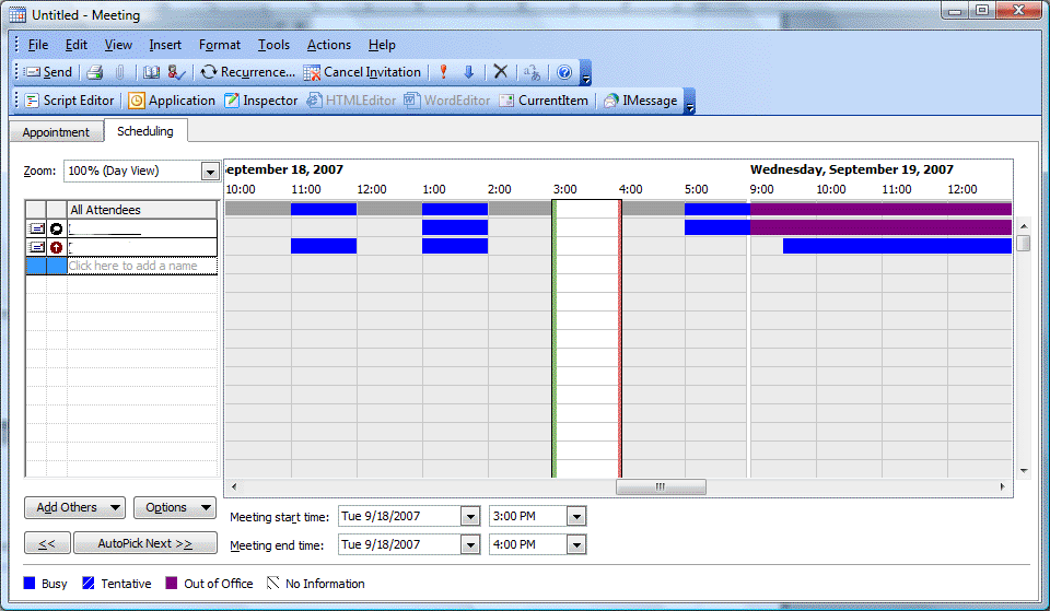 6. Select a free timeslot via the freebusy times and send the meeting to the attendees.